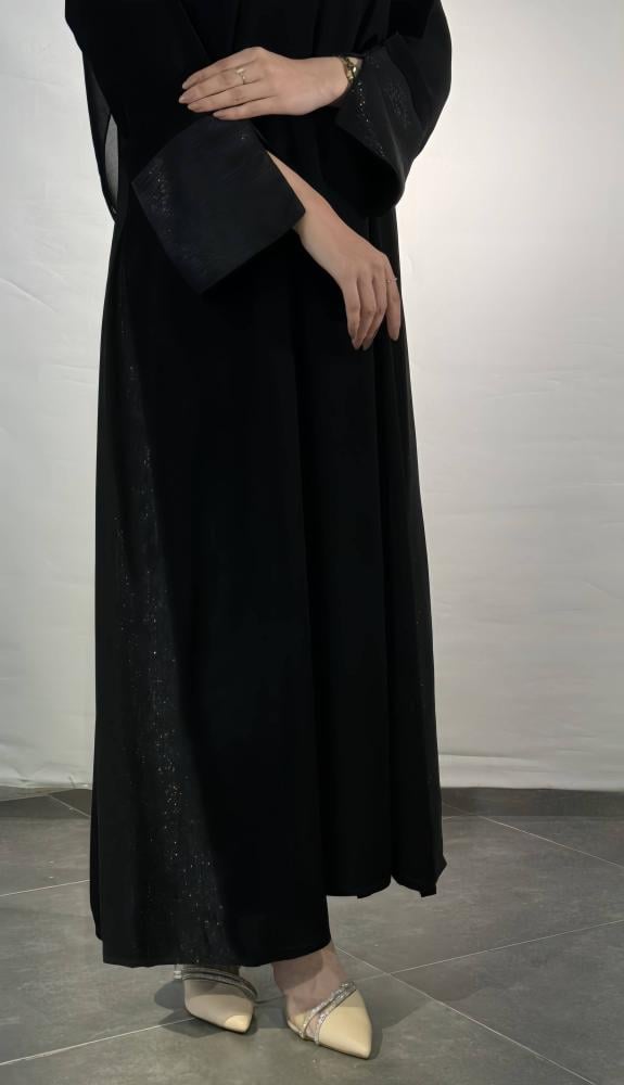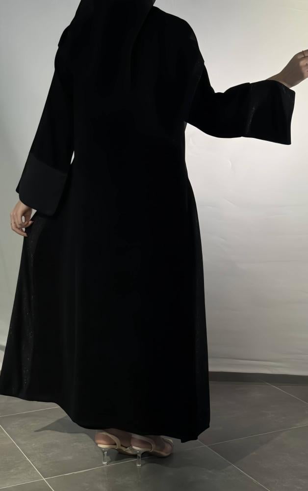 - القصة تعتمد على تصميم الكتف الكلاسيكي، والذي يُضفي طابعًا بسيطًا وعمليًا على العباية، مع الحفاظ على أناقتها وانسيابية القماش لتكوني مرتاحة وواثقة في كل تحركاتك.