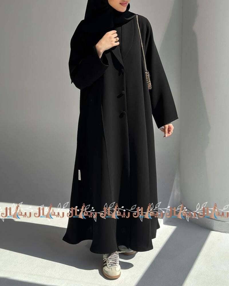 • أزرار الطقطق تجعل عباية نسائية سوداء سهلة الارتداء والخلع، كما تضيف لمسة من الراحة والعملية مع الحفاظ على المظهر الأنيق.