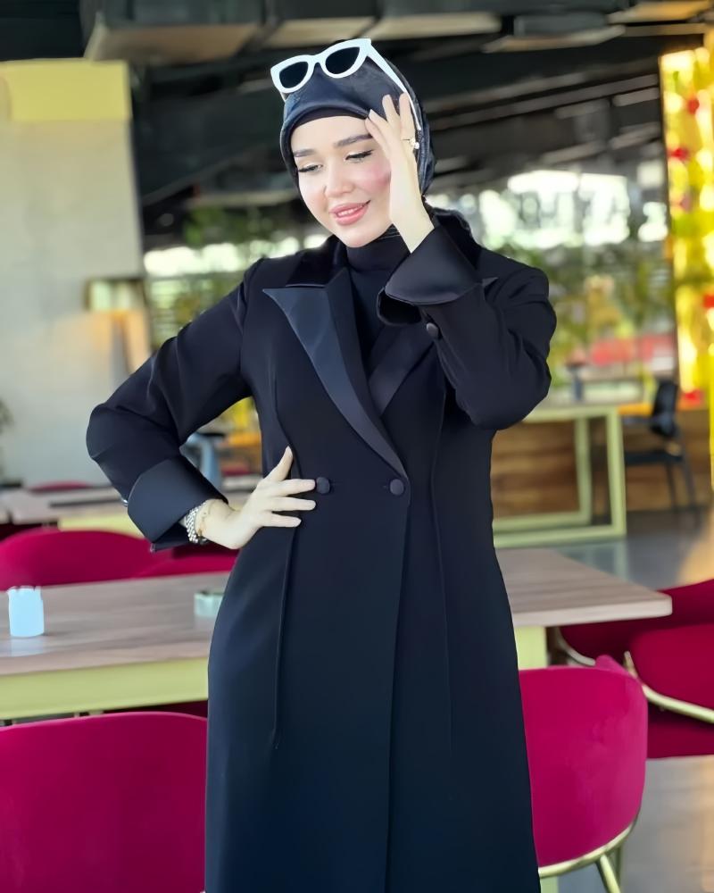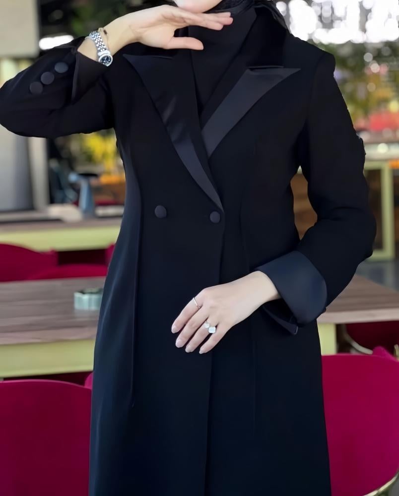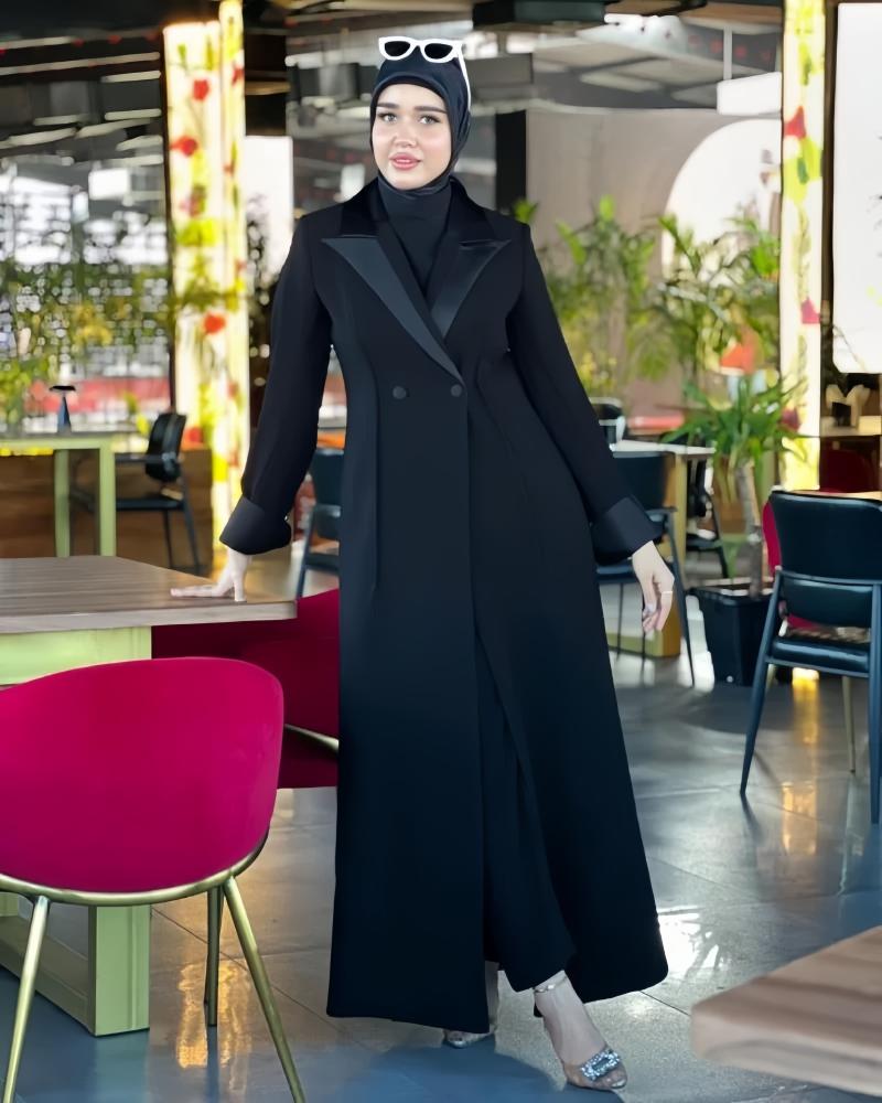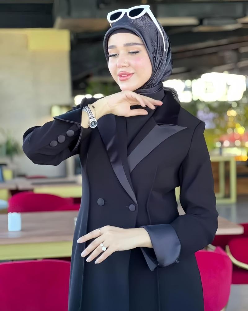 - تصميم عباية كتف بسيط مستوحى من قصّات البليزر الكلاسيكي قصة عملية تُبرز تناسق الجسم وتضفي طابعًا رسميًا راقٍ يليق بالمناسبات الرسمية والعملية.