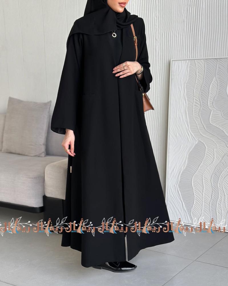 - قصة العباية: الكتف الكلاسيكي مع جيوب عملية.