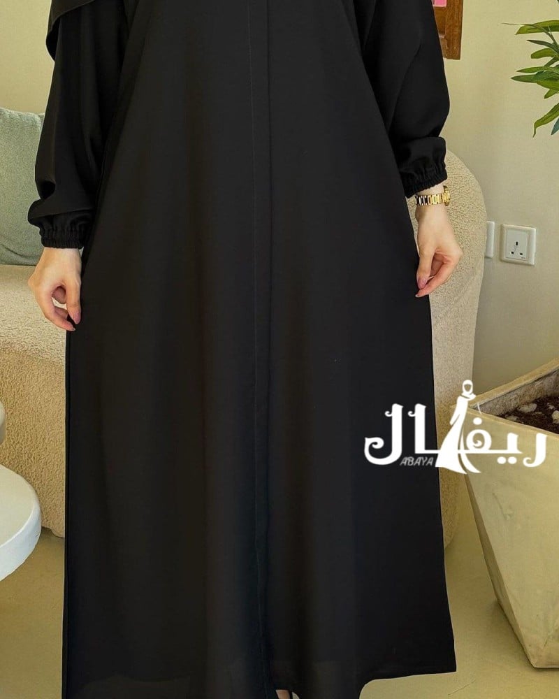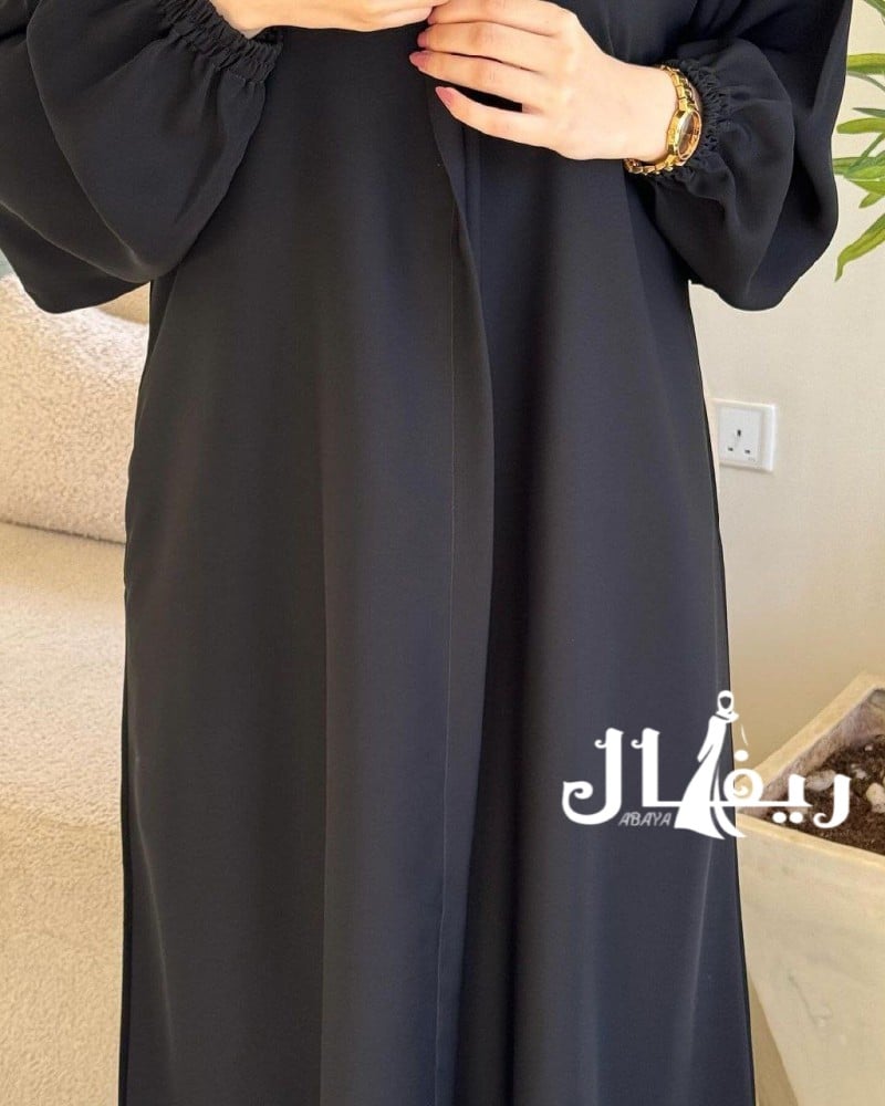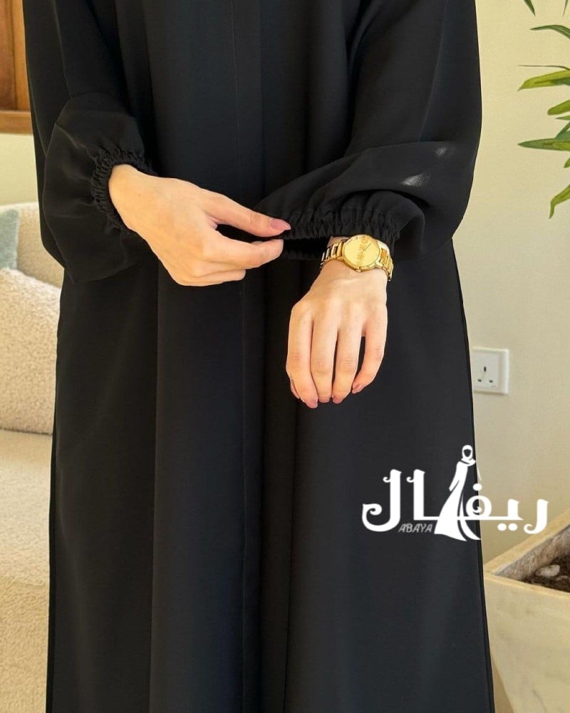 - وصف الموديل: عباية قماش الاناقة الواقف ذات كم قبضة توفرت باللون الاسود وصنعت من قماش الاناقة