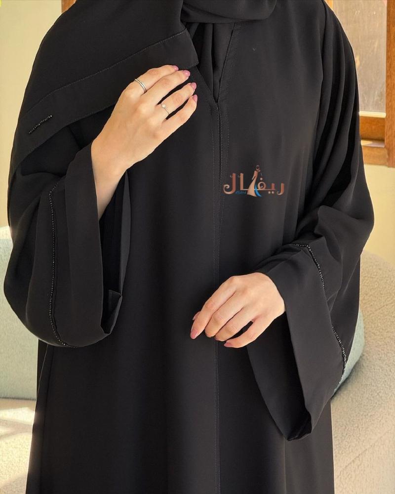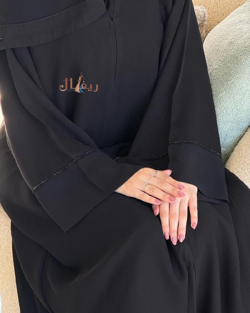 - عبايات الاناقه العباية سادة تماما ولكن يوجد بها خط كريستال يلتف حول منتصف الذراعين لتعطي مظهر جذاب